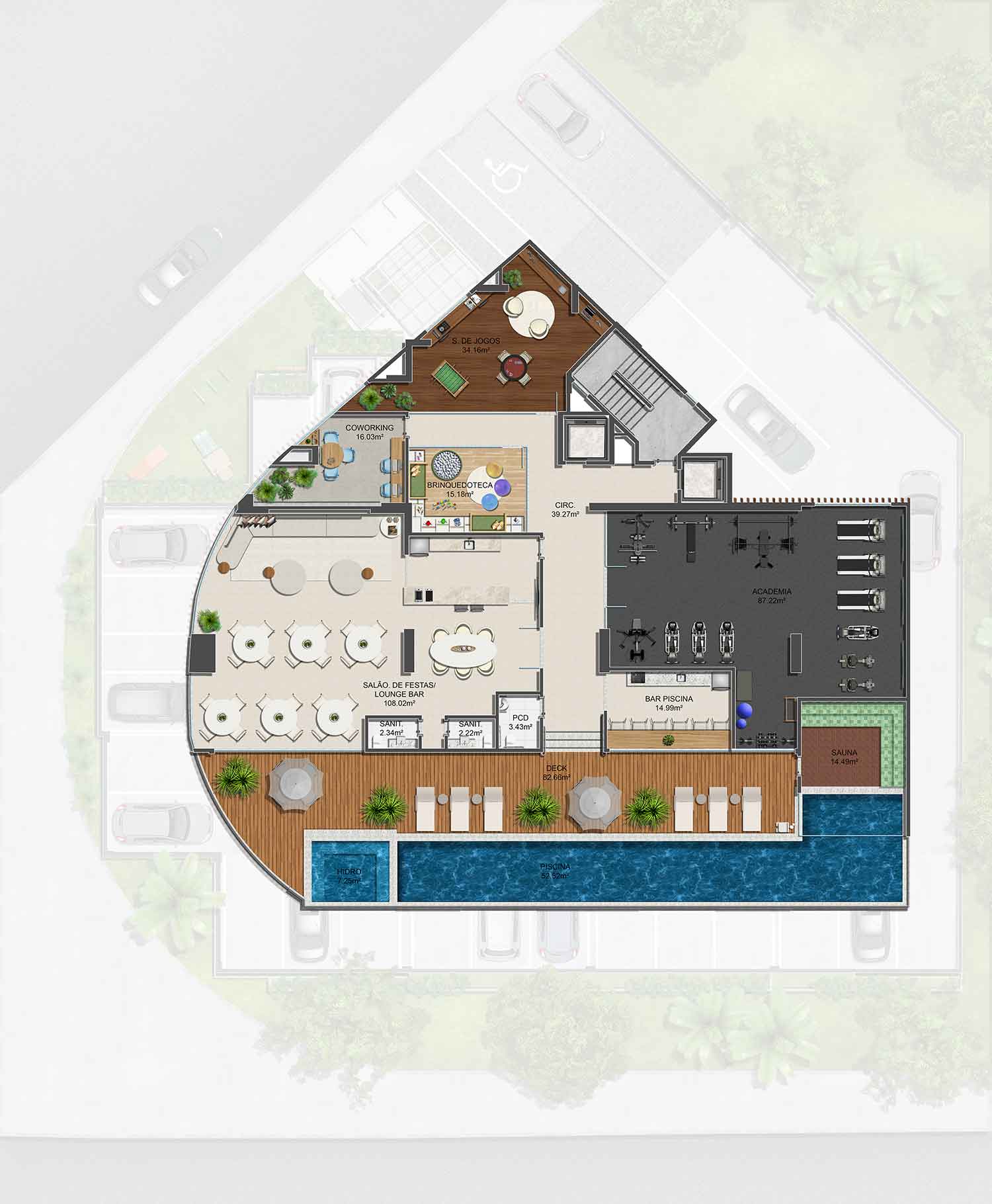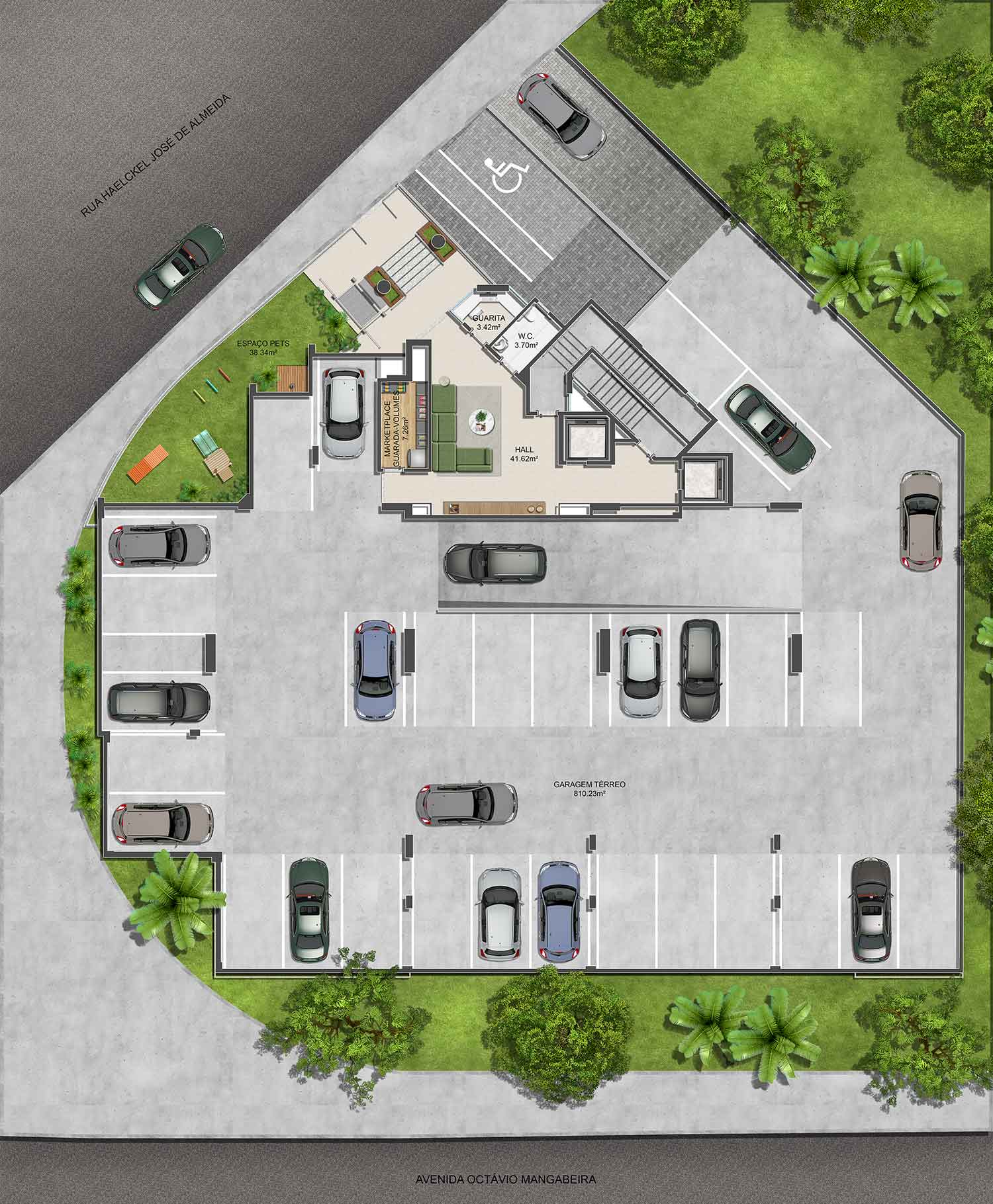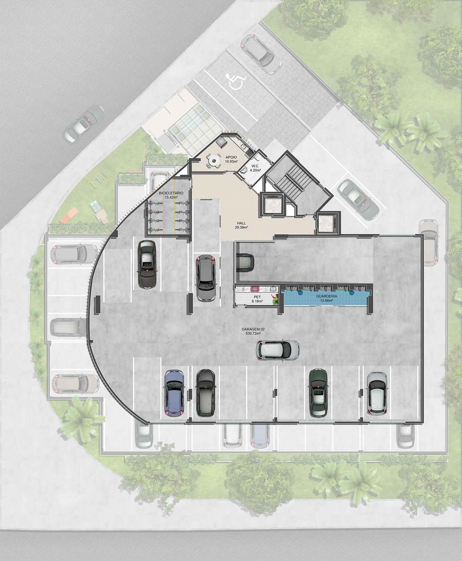 - 03 pavimentos de garagem: 01 vaga por unidade